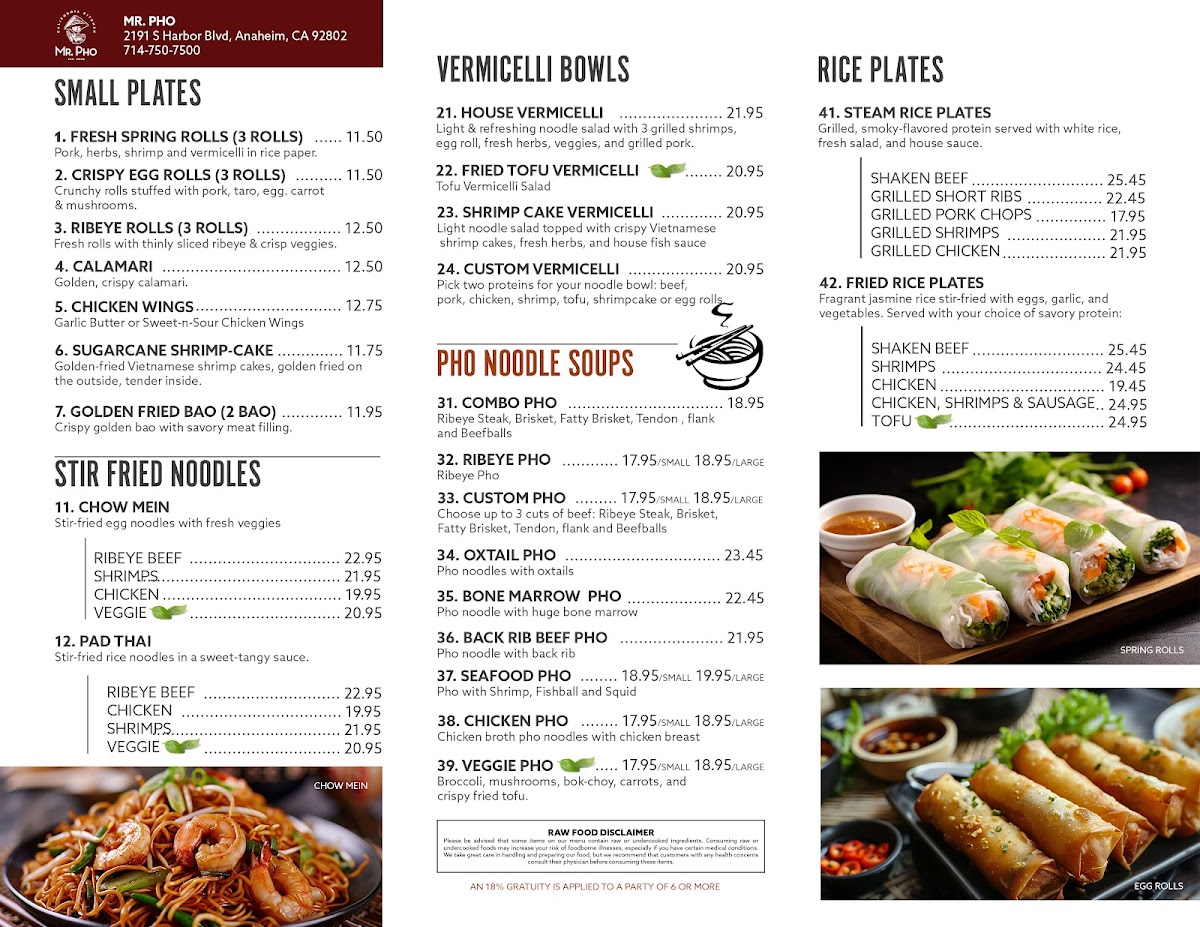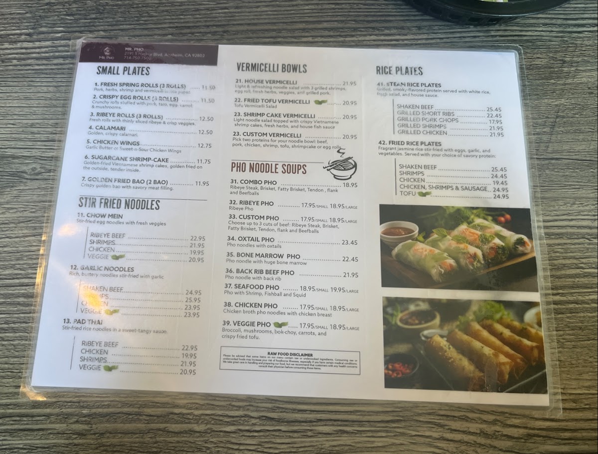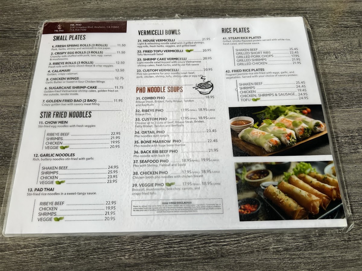 Welcome to Mr. Pho - California Kitchen & Bar, a culinary gem nestled in Anaheim, California, where the flavors of Vietnam come alive. The menu is a delightful mix of traditional and contemporary dishes, perfect for both pho aficionados and newcomers alike. Each bowl of pho is renowned for its rich, hearty broth and generous portions, as highlighted by satisfied patrons. The bone marrow pho stands out, earning rave reviews for its depth of flavor and tender meat.